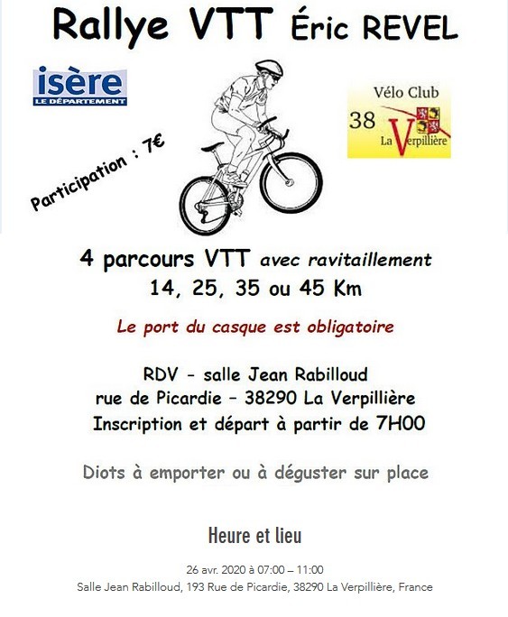 Le dimanche 26 avril 2020 à 07h Lieu : salle Jean Rabilloud 38290 La Verpillière
