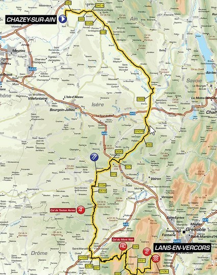 4ème étape au Départ de Chazey sur Ain pour une Arrivée à Lans en Vercors.