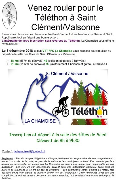 Venez rouler pour le Téléthon à Saint Clément sur Valsonne!