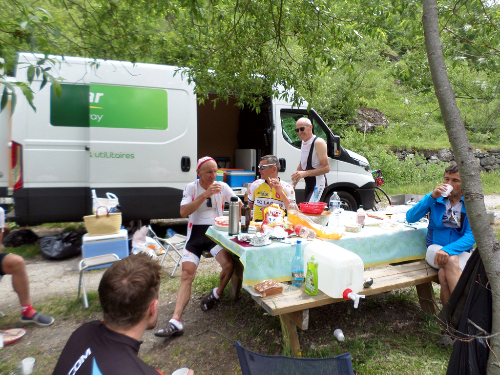 Des morceaux de choix avec l'Iseran et le Mont-Cenis, et en hors d'oeuvre pour certains le Ptit Saint-Bernard ! Bref, encore une belle mais très dure étape de montagne avec une arrivée dans la torpeur de Suze. Pourvu qu les clim fonctionnent dans es chambres car sinon demain matin les traits seront tirés...