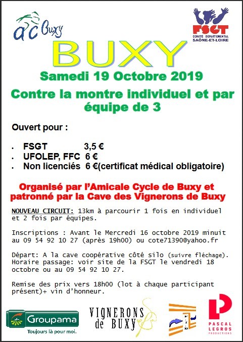 Chrono Individuel et par Equipes de 3 organisé par l'AC Buxy (FSGT 71)