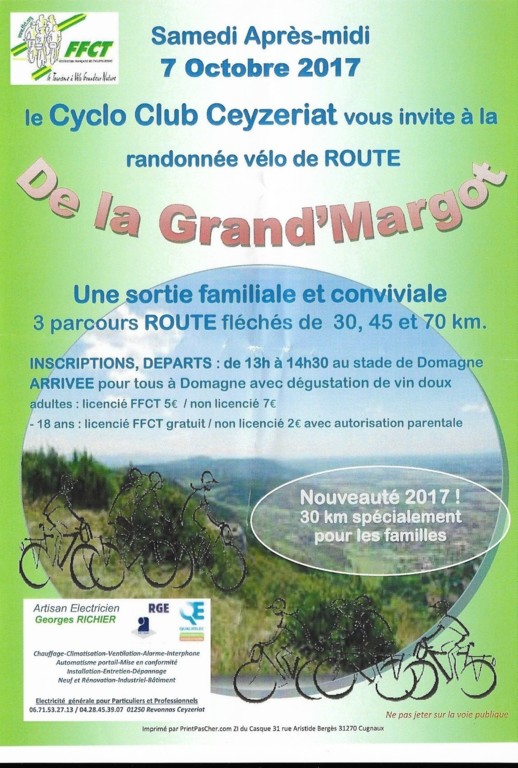 Superbe parcours de 70 km (en fait 80,4 km en comptant les erreurs de parcours) en passant par les S de Treffort, Arnanc, Grand Corent avec 1140 m de dénivelé.