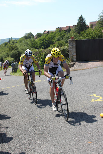 Etape 1, Prologue (contre la montre) : 2,6kms, 1 mur de 600 mètres (voir photos), 1 bosse de 500 mètres et des descentes très techniques en ville. Vitesse moyenne du 1er, 36 km/h. Cédric, prend la 4èmeplace avec 1sec de retard sur le premier. Déçu. Denis et Sébastien, bien que prudents dans les descentes, concèdent moins de 15sec. Stéphane et Jérôme, avec 20sec et 30sec de retard, restent dans la course.