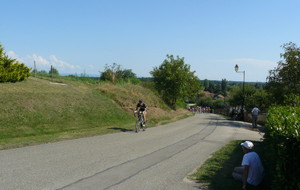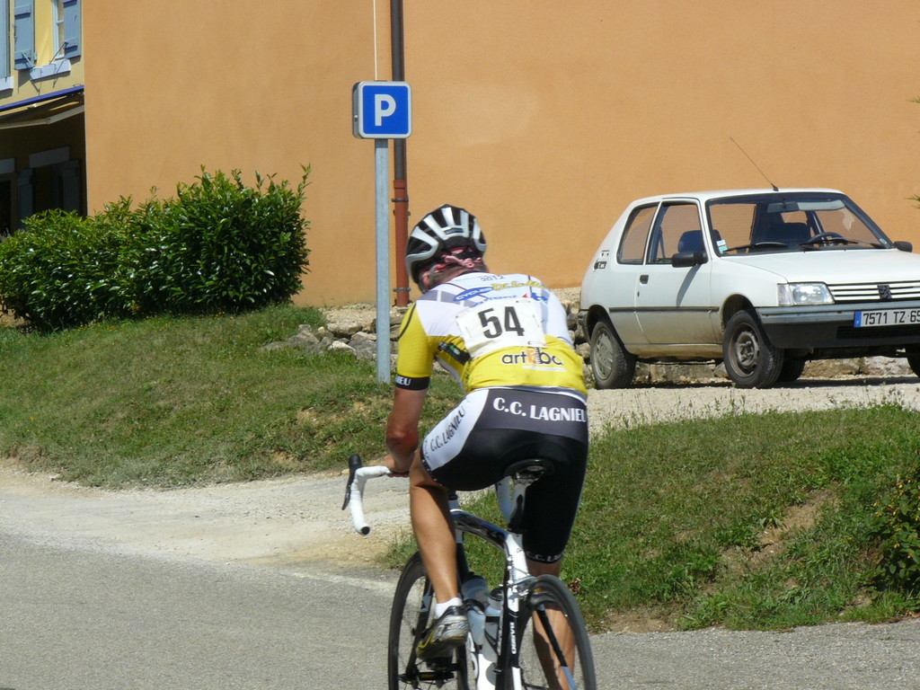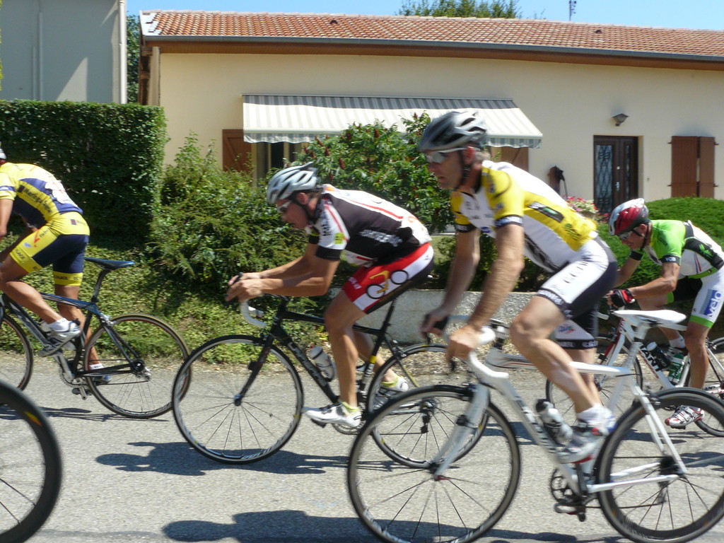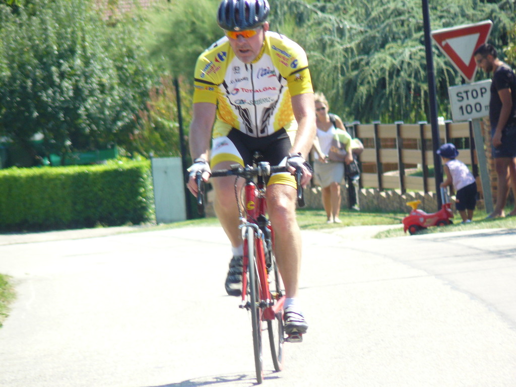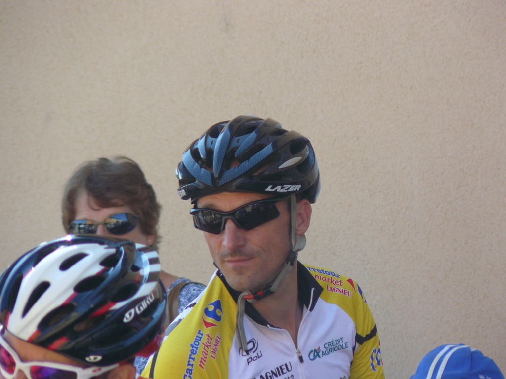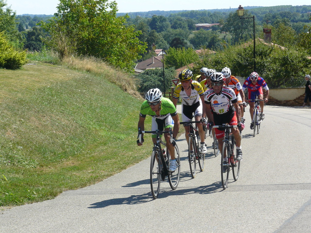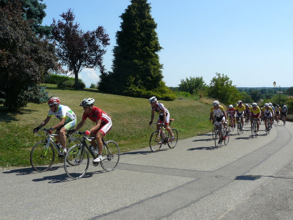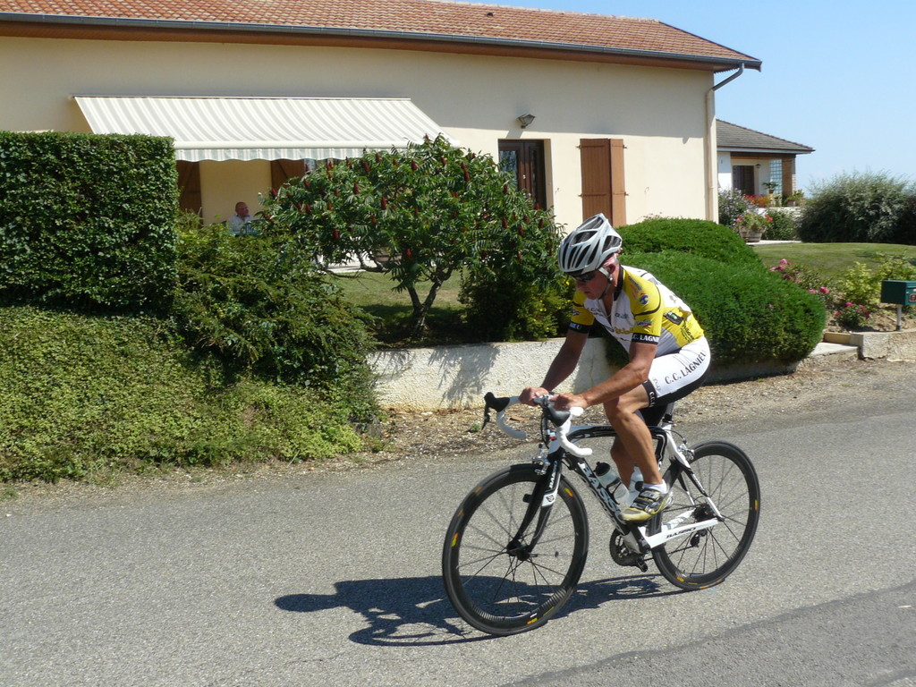 à 2 tours de l'arrivée fut décroché dans la longue bosse précedant l'arrivée. A l'entrée de Chaveyriat étant à une centaine de mètres du groupe se lança dans la descente à fond, malheureusement il tira tout droit au 1er virage. Dégouté il préféra abandonner.