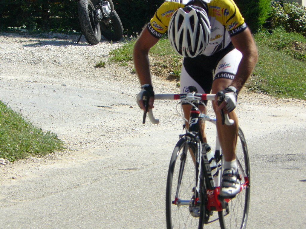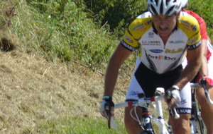 En 2° caté, Frédéric à les boules ! victime d'un ennui mécanique au pied de la bosse, Il doit laisser partir le peloton. Il termine la course.