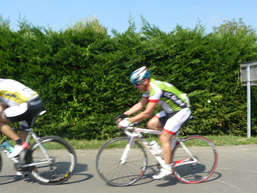 En 4° caté, Max tente encore un fois de se faire la belle. Après 3 tours en échappée, ils sont repris. C'est le moment que choisit Eric pour contrer. Eric termine 3°. Encore une belle course d'équipe en 4° caté. Dominique, Alain, José, Pascal et Max terminent dans le peloton. Max et Eric attendent impatiemment Châtenay