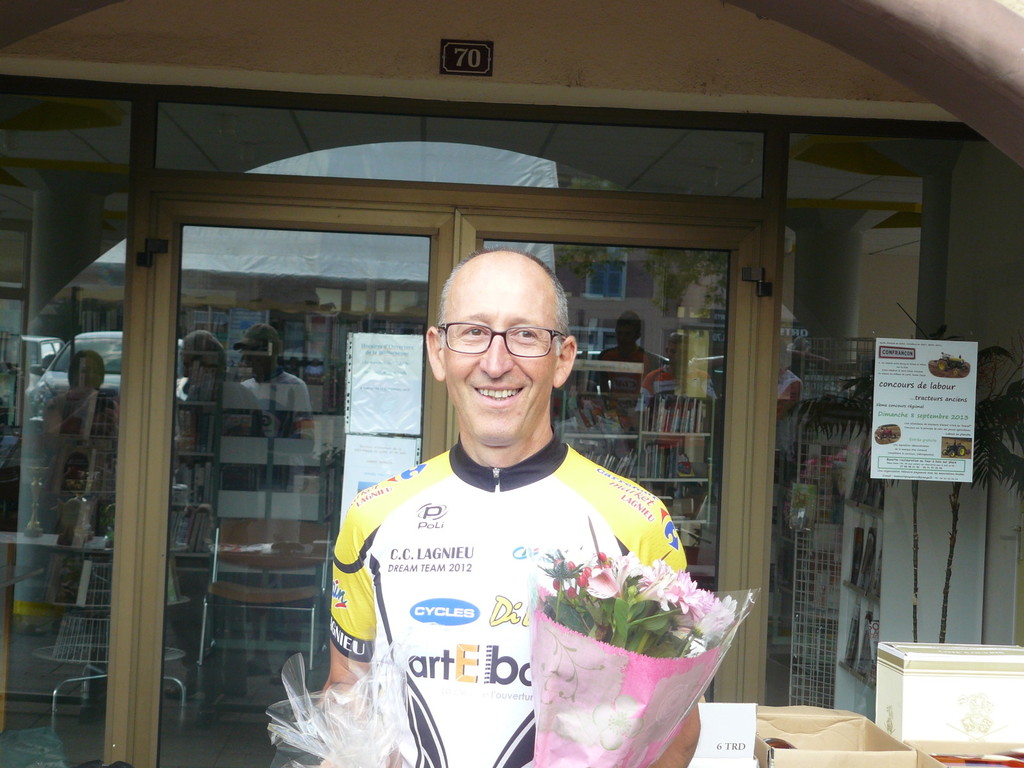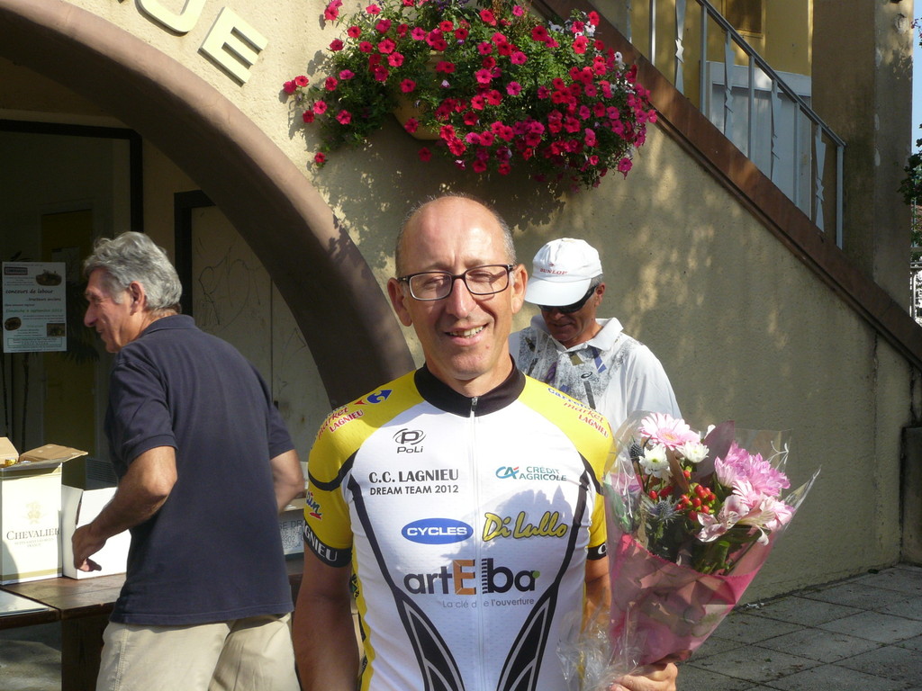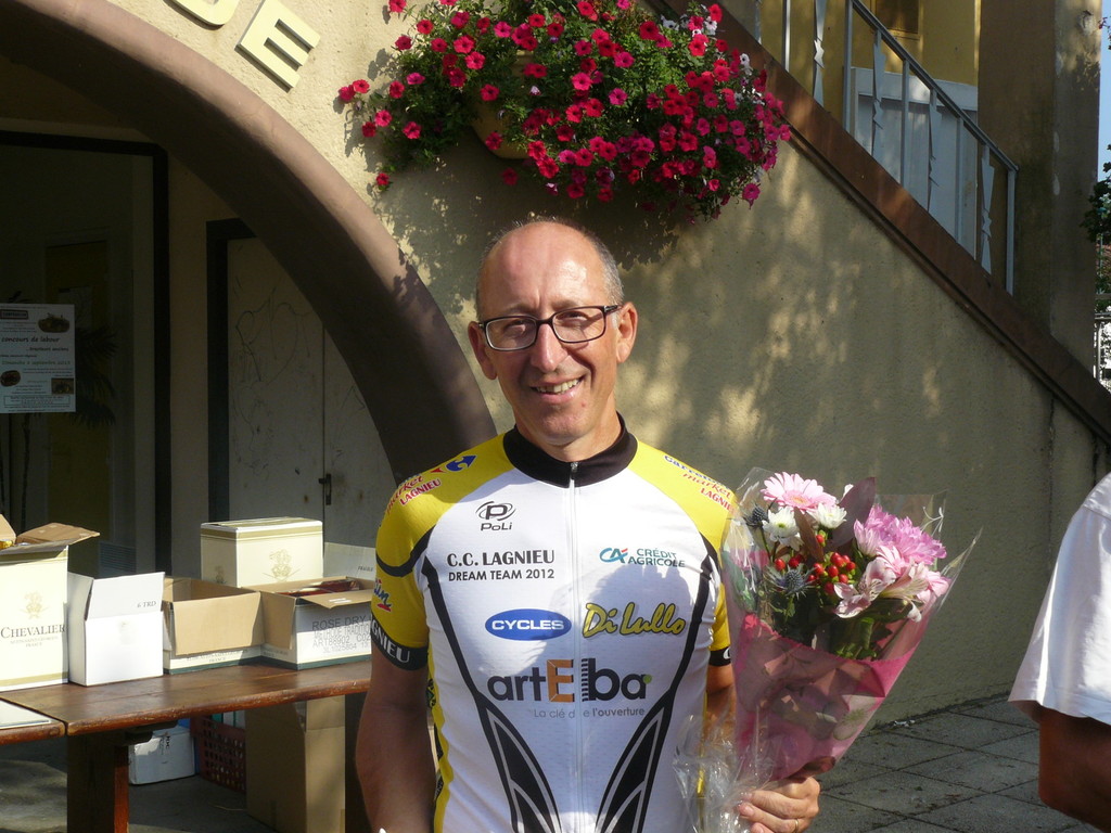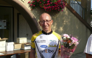 Pour Michel, c'est fait ! Après de nombreuses places d'honneur, Michel signe une belle victoire qui ne surprend personne et est synonyme de montée en catégorie supérieure. Après avoir animé la course, Michel se détache dans le dernier km et ne sera plus repris. Guy termine 8°. Bonne chance à Michel dans le peloton des 2° caté.