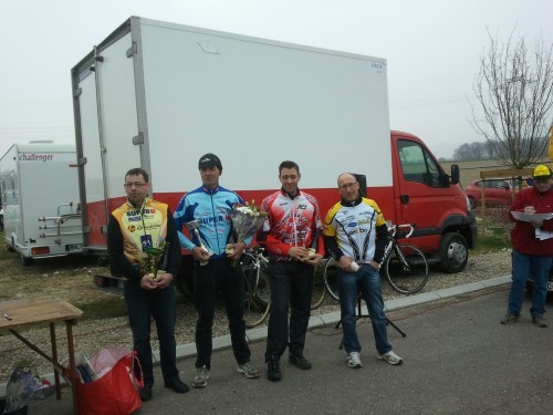 En 4° caté, Dominique, Valentino et Guy terminent dans le peloton.