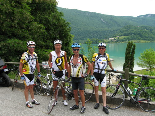 Photo de notre sortie au lac d'Aiguebelette hier lundi. Peu nombreux , 171 kms et 1568m de dèv.