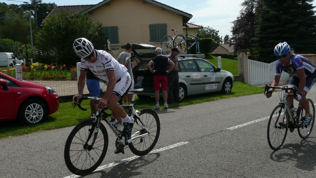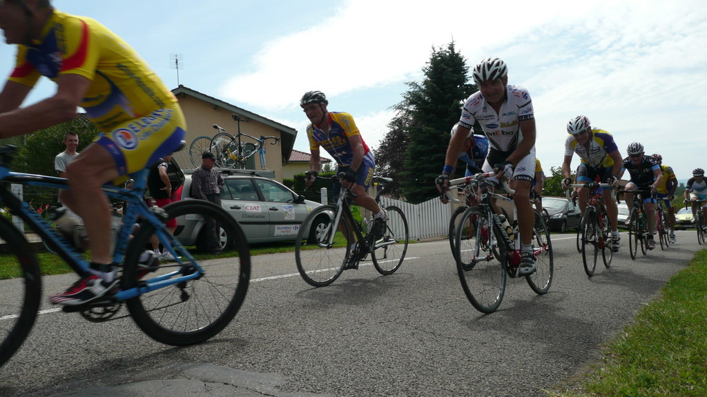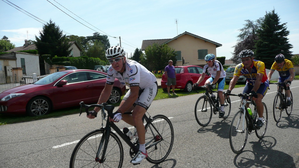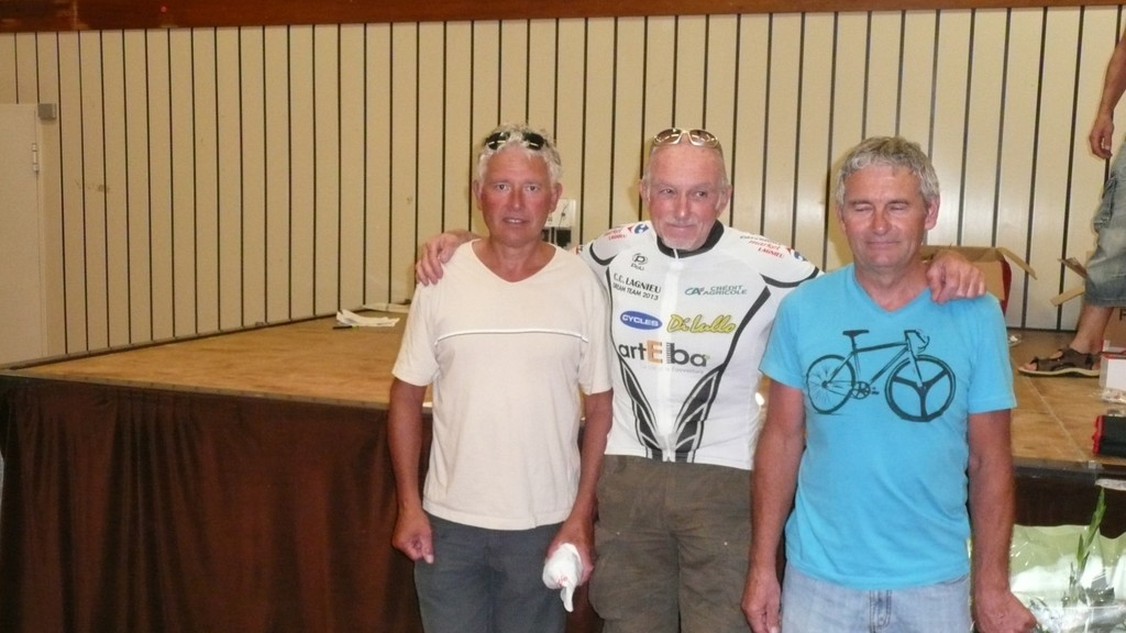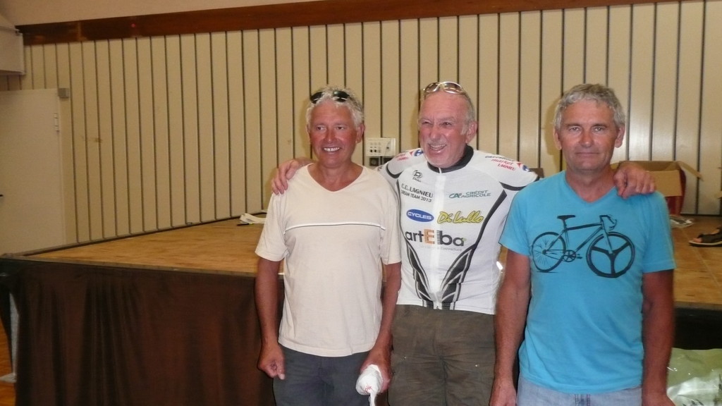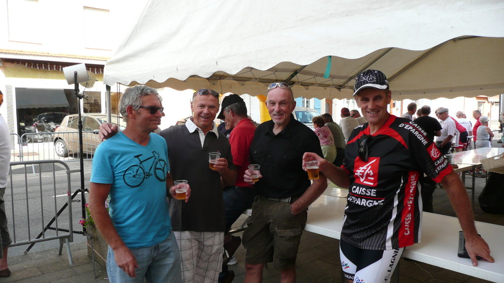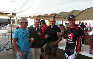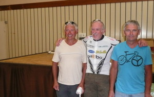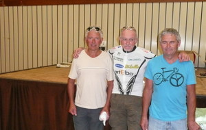 En 4 Alain, Dominique, Eric, Max et Pascal. Bravo Eric qui termine 3ème après une longue échappée, floué de la 2ème place par une confusion à l'arrivée. Il devrait logiquement recupérer cette place après étude des règlements. Dominique et Max terminent dans le peloton, Alain dans le gruppetto et Pascal abandonne au 7ème tour. Retour de vacances gagnant pour Eric.