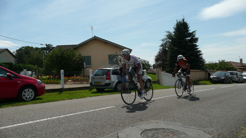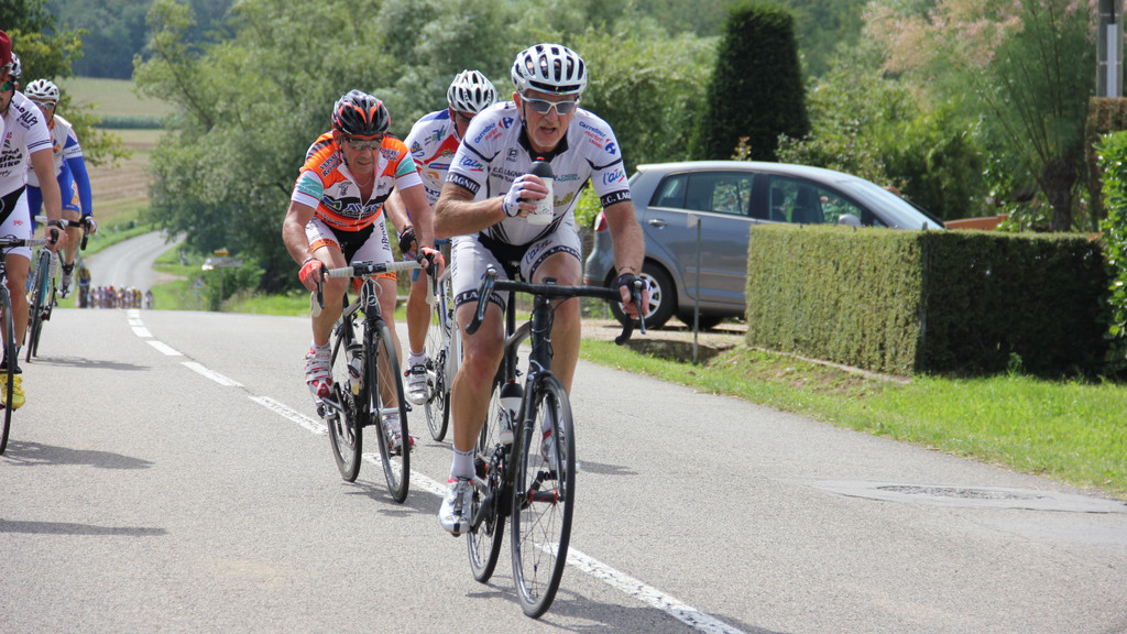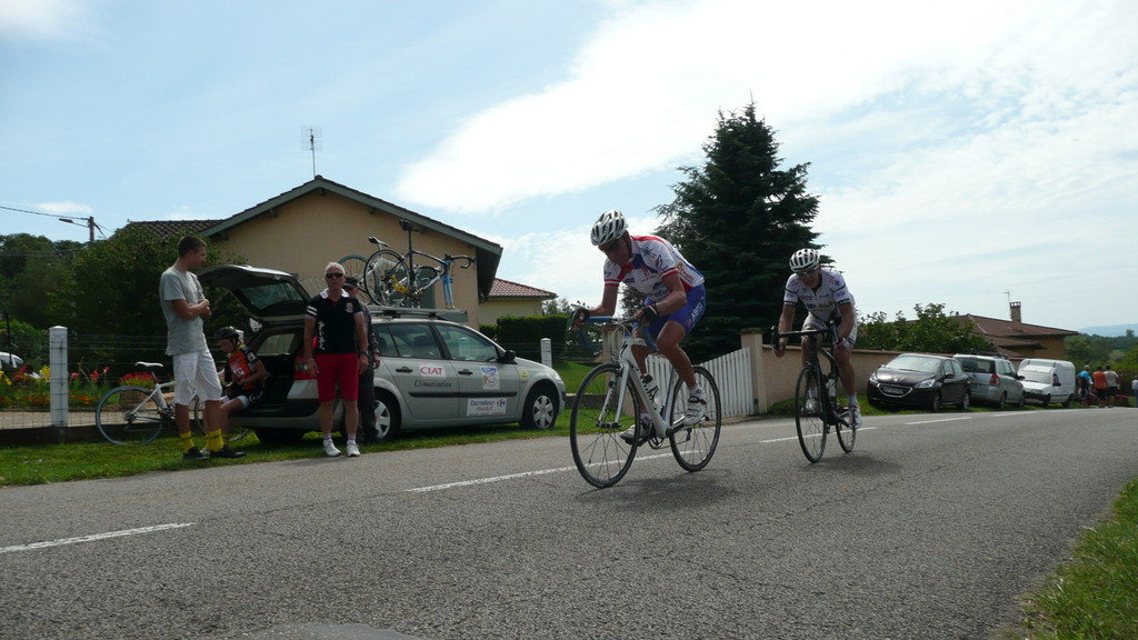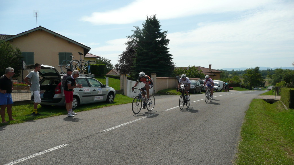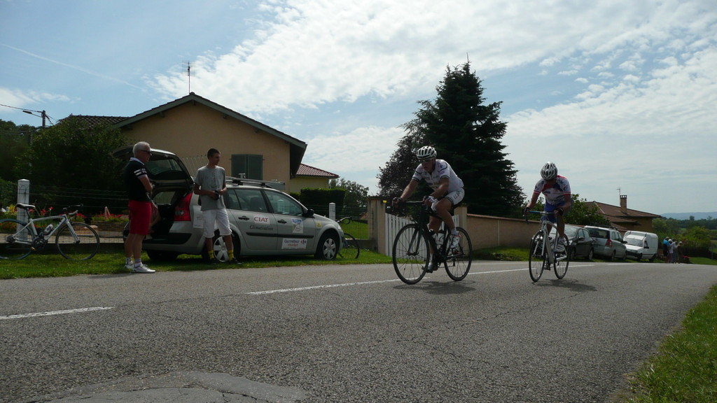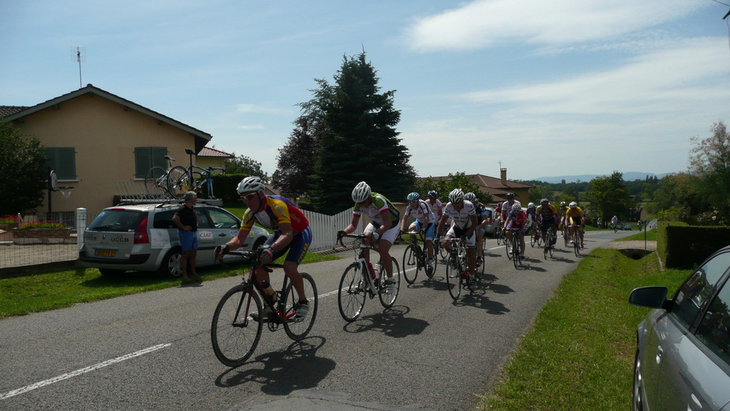 En 4 Alain, Dominique, Eric, Max et Pascal. Bravo Eric qui termine 3ème après une longue échappée, floué de la 2ème place par une confusion à l'arrivée. Il devrait logiquement recupérer cette place après étude des règlements. Dominique et Max terminent dans le peloton, Alain dans le gruppetto et Pascal abandonne au 7ème tour. Retour de vacances gagnant pour Eric.