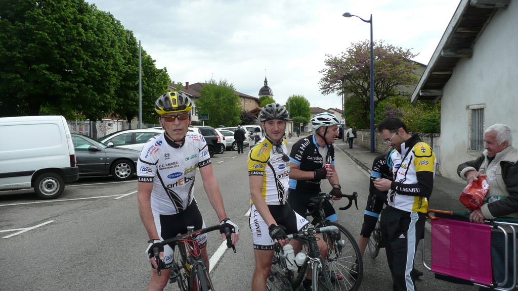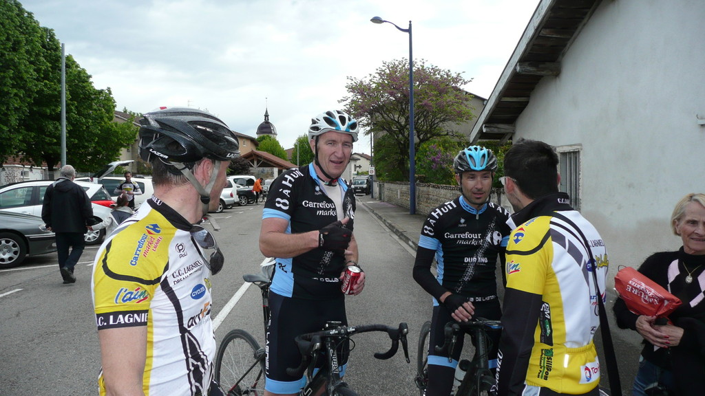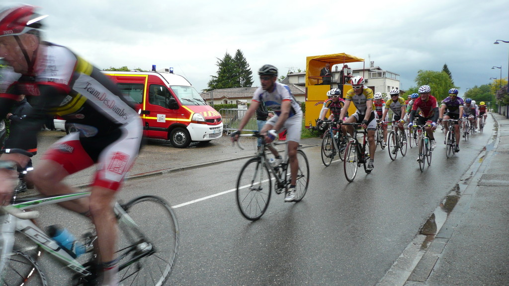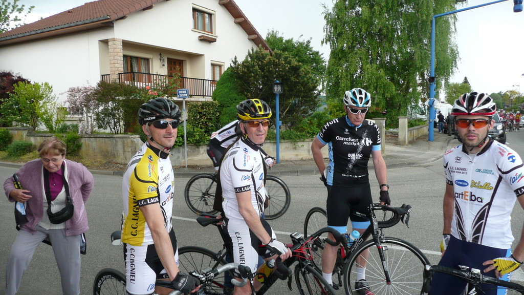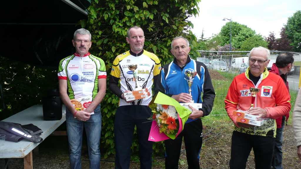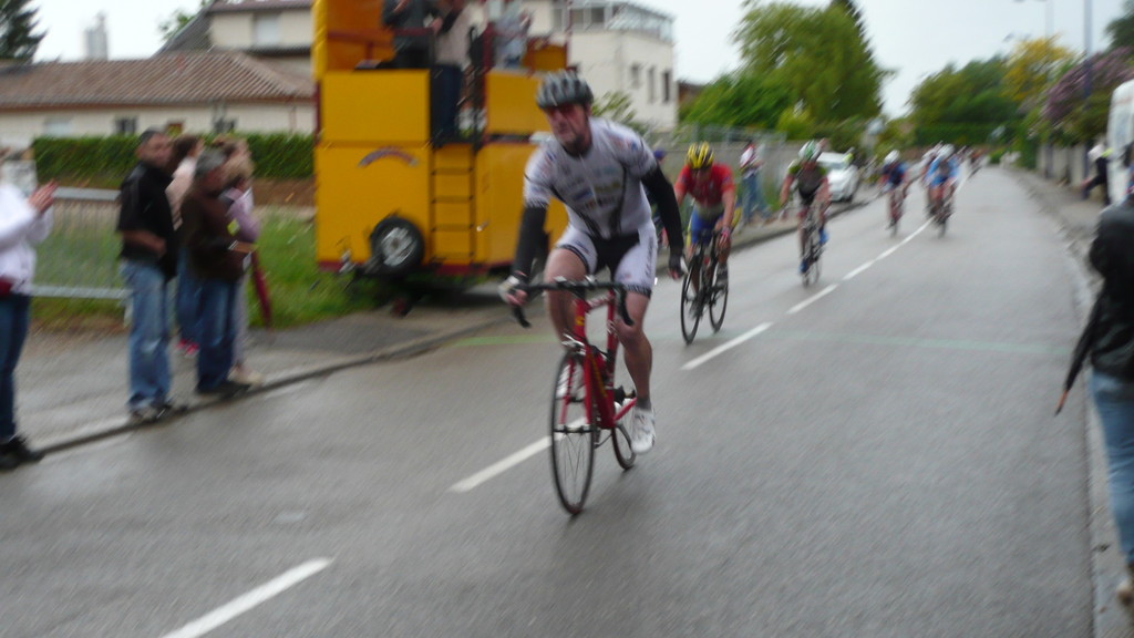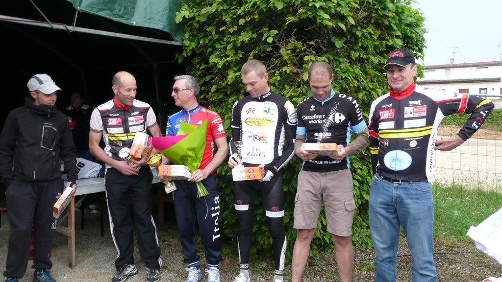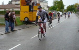 4éme catégorie : Eric, Max, Domminique, Valentino et Pascal étaient au départ. Malgé une pluie intense, nos coureurs ont effectués une belle première partie de course. Après la mi-course, un coureur accroche la roue arrière de Valentino, il lui arrache 4 rayons et contraint Valentino à l'abandon. Le dernier tour fut riche en événements. Sur une erreur d'interprétation, Max fait la gagne alors qu'il reste un tour. Eric et Pascal victimes de la dernière des multiples chutes de cette course. Eric s'en sort avec un poignet douloureux. Pascal à été conduit aux urgences pour un controle de son épaule, il en ressort avec des agraphes au coude, une belle escalope sur la cuisse et une distension d'un ligament de l'épaule. La note positive est apportée par Domminique qui, à l'issue d'un magnifique sprint prend une nouvelle et belle 2e place. Max prend la 8e place.