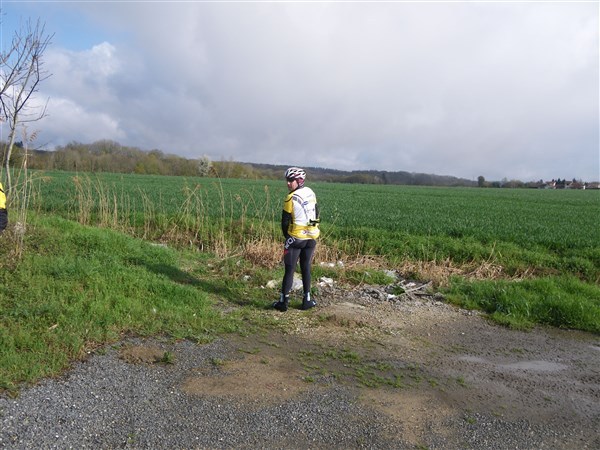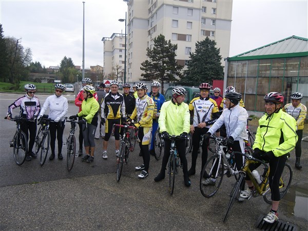 Après un départ commun de Lagnieu en douceur, tout le monde a cheminé via Posafol, Leyment et St-Maurice de Rémens pour grimper en Dombes par la bosse de Gévrieux en haut de laquelle une petite pause pipi a permis le regroupement.