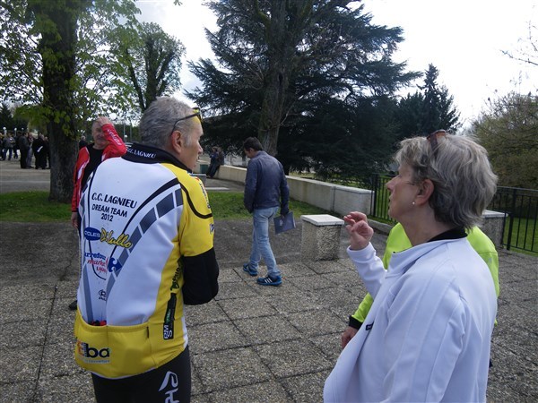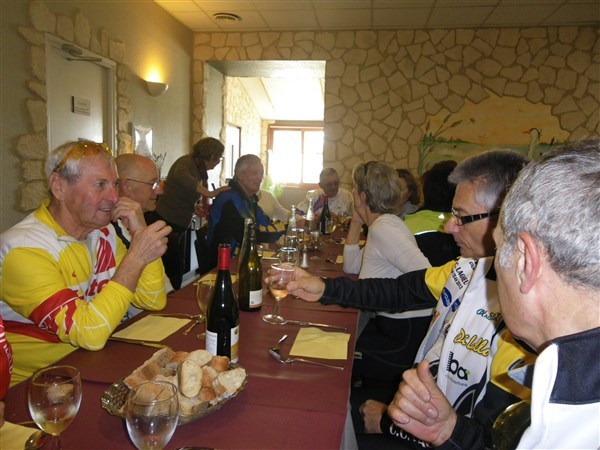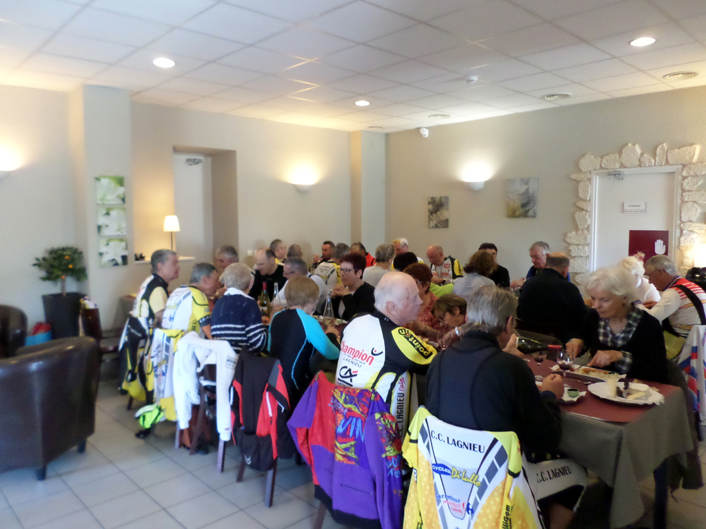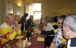 Une pause méritée au Château de Sainte-Croix où quelques épouses sont venus rejoindre leur cycliste pour le repas, avant de reprendre la route pour un retour libre mais en petits groupes sur Lagnieu.