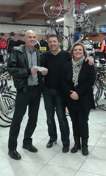 Mardi 8 mars, Stéphane le gérant des Cycles Di Lullo à Ambérieu, remettait à Yves Dupré, président du CC.Lagnieu, et à Jean-Michel Garcia, membre du bureau en charge des relations avec les sponsors, un chèque concrétisant son sponsoring pour la saison 2016.