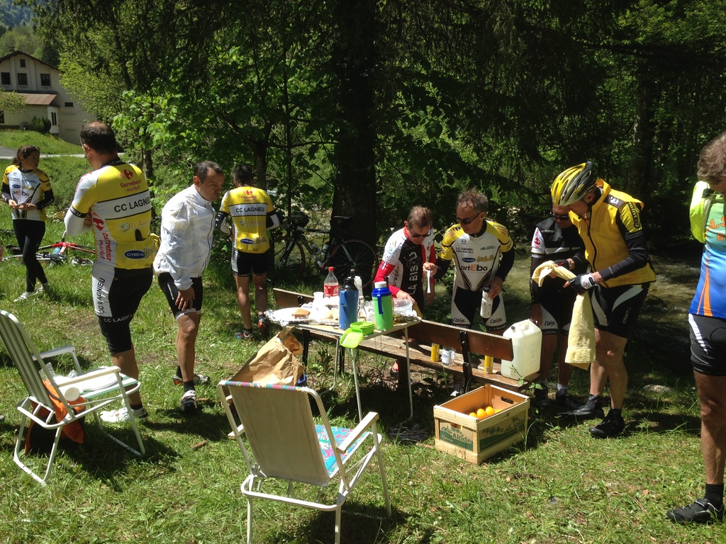 Un tour du lac d'Aiguebelette pour ...s'échauffer (brrr le thermomètre descend à l'ombre jusqu'à 4,5° !), et c'est parti pour la difficile ascension de Col de l'Epine avant une plongée sur Chambéry, départ de la grimpée du Col du Granier par où nous entrons en Chartreuse. Descente sur St-Pierre d'Entremont où Corinne l'épouse de Jacques nous attend avec le pique-nique pour une pause repas très appréciée (même s'il manquait du rouge n'est-ce pas Max !) couronnée par les gâteaux que nous ont concoctés les filles de Christelle. Puis après le café (et une petite lichette de poire...) ascension exigeante (surtout après manger) du Col du Cucheron, descente par St-Pierre de Chartreuse sur St Laurent du Pont, un petit viron par St Etienne de Cossey pour un arrêt surprise chez les parents de Claude qui nous accueillent pour le goûter avec un bon gâteau et une boisson, et c'est reparti pour le dernier col, celui des Mille Martyrs, avant un retour sur La Bridoire où Corinne nous attend avec des victuailles des fois que nous aurions de nouveau faim !