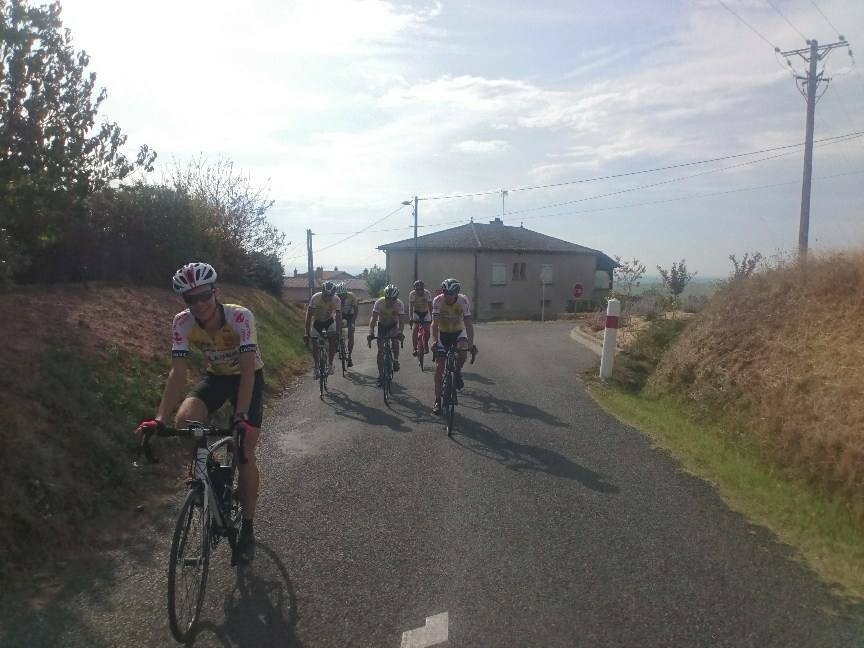 Après les massifs du Bugey, du Jura et des Alpes, cette 12° sortie journée organisée par le club se déroulait dans les Monts du Beaujolais et du Mâconnais. Le circuit, concocté par Jacques notre maître es-planificateur des sorties journée, nous a conduit ce samedi 19 septembre à travers quelques-uns des meilleurs crus du Beaujolais : Côte de Brouilly, Chénas, Chiroubles, Juliénas, Fleurie, Morgon, Saint-Amour. A mi-parcours, un arrêt repas au resto "Entre-nous" à Matour, a permis aux huit participants de se restaurer dans la bonne humeur pour terminer ensuite ce bel itinéraire par le Mont Brouilly, juste avant l'orage.