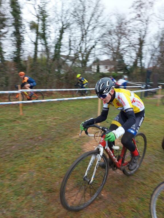 Nouvellement licencié au club, le jeune cadet Nathan Duprè signe sa première victoire sous nos couleurs lors du cyclo-cross de Francheville.