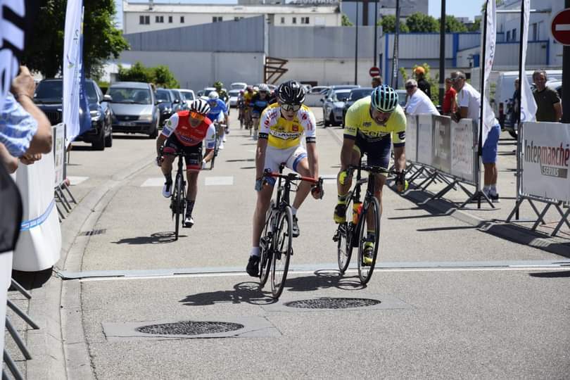 Décidément insatiable, Nathan a une nouvelle fois dynamité le peloton des 4° catégories et signé une belle victoire sur ce 6° critérium de Bourg. Sorti du peloton dès le premier tour, Nathan est rejoint par deux coureurs. Ensemble ils mèneront l’échappée au bout. Nathan règlera ses compagnons d’échappée au sprint et s’adjurera une nouvelle victoire, la 5° !